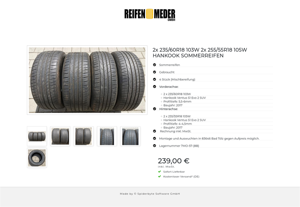 ★ KOSTENLOSER – VERSAND ★ Zum Verkauf stehen vier gebrauchte Sommerreifen in den Größen 2x 235/60R18 103W 2x 255/55R18 105W vom Hersteller Hankook im Profil Ventus S1 Evo 2 SUV Die Reifen sind aus der Produktion 2017 und 2017. Die Profiltief…