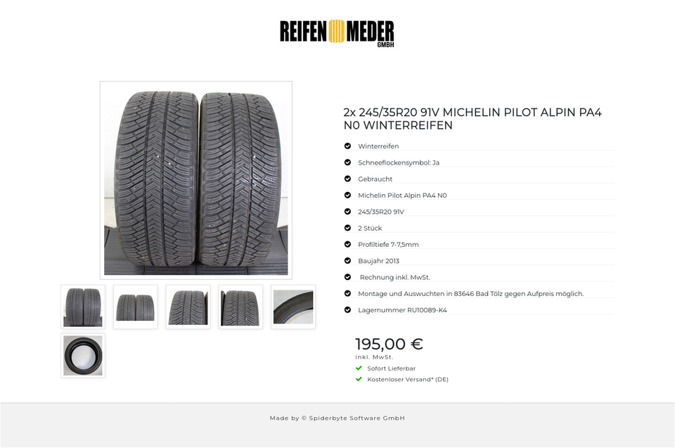★ KOSTENLOSER – VERSAND ★ Zum Verkauf stehen zwei gebrauchte Winterreifen in der Größe 245/35R20 91V vom Hersteller Michelin im Profil Pilot Alpin PA4 N0 mit Schneeflockensymbol Die Reifen sind aus der Produktion 2013. Die Profiltiefe beträ…