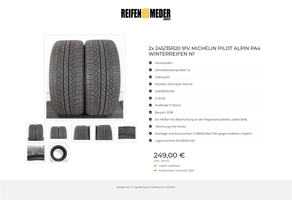 ★ KOSTENLOSER – VERSAND ★ Zum Verkauf stehen zwei gebrauchte Winterreifen in der Größe 245/35R20 91V vom Hersteller Michelin im Profil Pilot Alpin PA4 N1 mit Schneeflockensymbol Die Reifen sind aus der Produktion 2018. Die Profiltiefe beträ…
