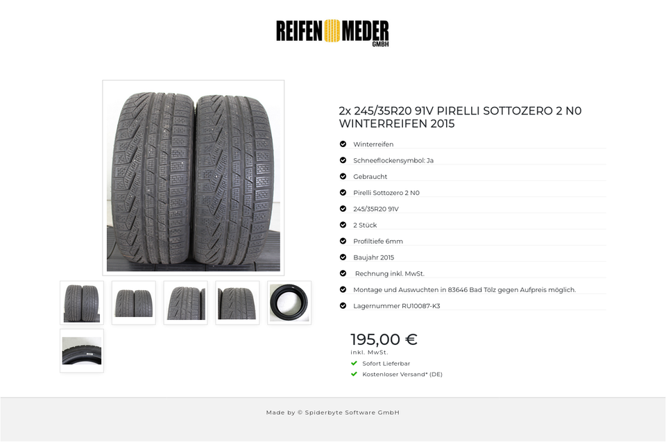 ★ KOSTENLOSER – VERSAND ★ Zum Verkauf stehen zwei gebrauchte Winterreifen in der Größe 245/35R20 91V vom Hersteller Pirelli im Profil Sottozero 2 N0 mit Schneeflockensymbol Die Reifen sind aus der Produktion 2015. Die Profiltiefe beträgt 6m…