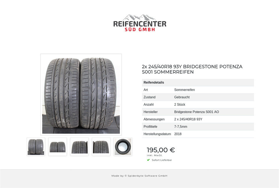 2x 245/40R18 93Y BRIDGESTONE POTENZA S001 SOMMERREIFEN #1RNC