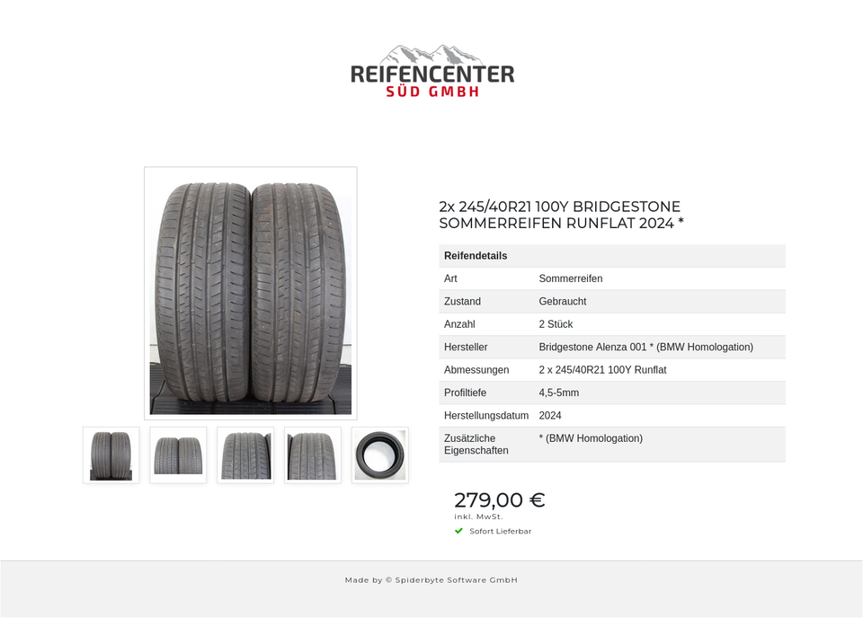 2x 245/40R21 100Y BRIDGESTONE SOMMERREIFEN RUNFLAT 2024 *