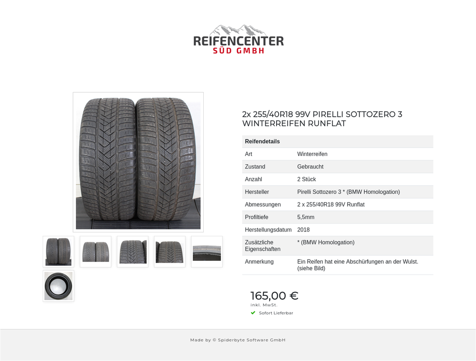 ► Anmerkung: Ein Reifen hat eine Abschürfungen an der Wulst. (siehe Bild)