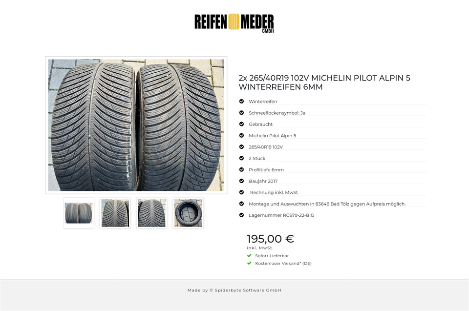 2x 265/40R19 102V MICHELIN PILOT ALPIN 5 WINTERREIFEN 6MM #3916