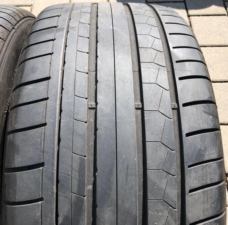 Die Reifen sind aus der Produktion 2019. Die Profiltiefe beträgt in der Mitte 4mm und auf der Schultern 5mm.