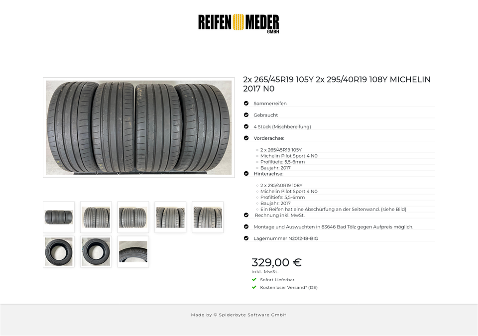 Die Reifen sind aus der Produktion 2017 und 2017. Die Profiltiefe beträgt auf der Vorderachse 5,5-6mm und auf der Hinterachse 5,5-6mm.