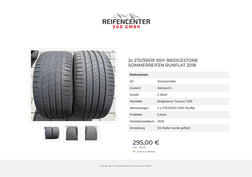 ► KOSTENLOSER VERSAND ◄ 2x 275/35R19 100Y BRIDGESTONE SOMMERREIFEN RUNFLAT 2018 _________________________________________________________ Reifendetails: ► Zustand: Gebraucht ► Anzahl: 2 Stück ► Spezifikation: Sommerreifen ► Reifengrösse: 275/35…