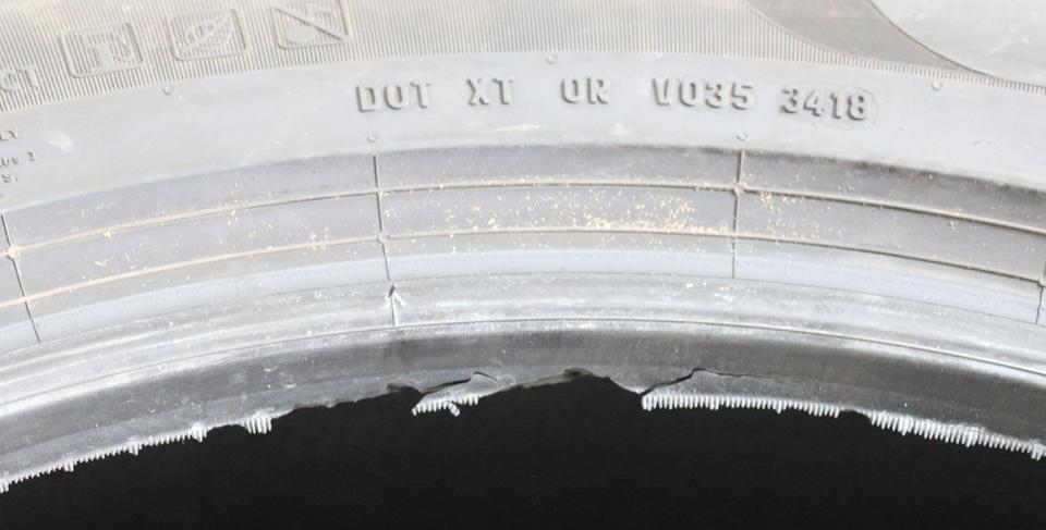 Ein Reifen hat eine Abschürfung an der Wulst. (siehe Bild)