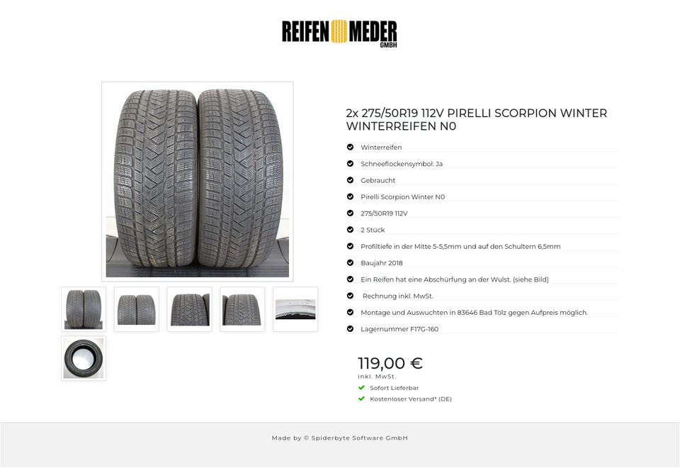 ★ KOSTENLOSER – VERSAND ★ Zum Verkauf stehen zwei gebrauchte Winterreifen in der Größe 275/50R19 112V vom Hersteller Pirelli im Profil Scorpion Winter N0 mit Schneeflockensymbol Die Reifen sind aus der Produktion 2018. Die Profiltiefe beträ…