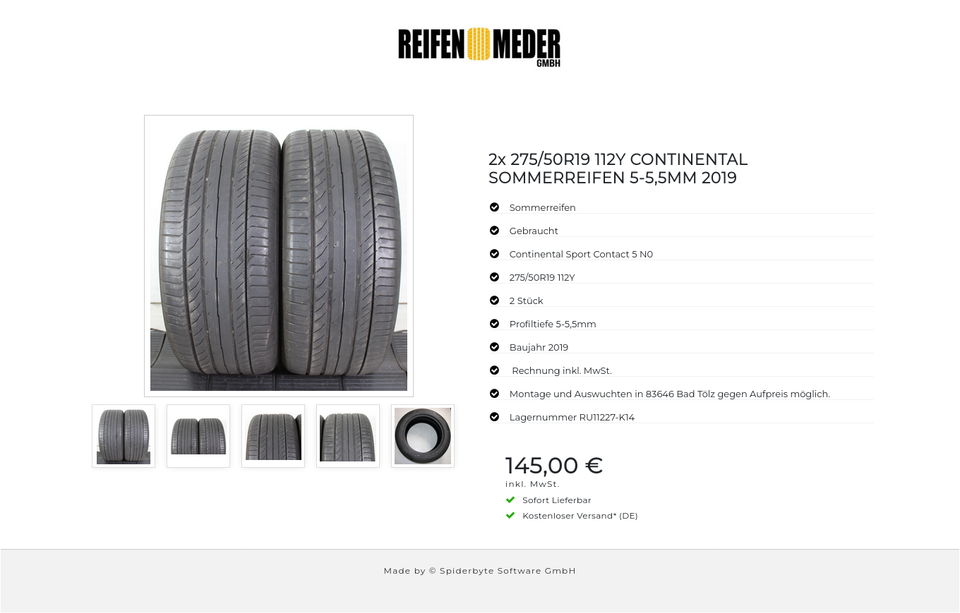 2x 275/50R19 112Y CONTINENTAL SOMMERREIFEN 5-5,5MM 2019 #1UZU