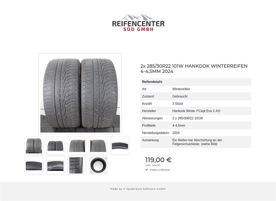 Schreibe die erste Rezension für „2x 285/30R22 101W HANKOOK WINTERREIFEN 4-4,5MM 2024 #26TG“