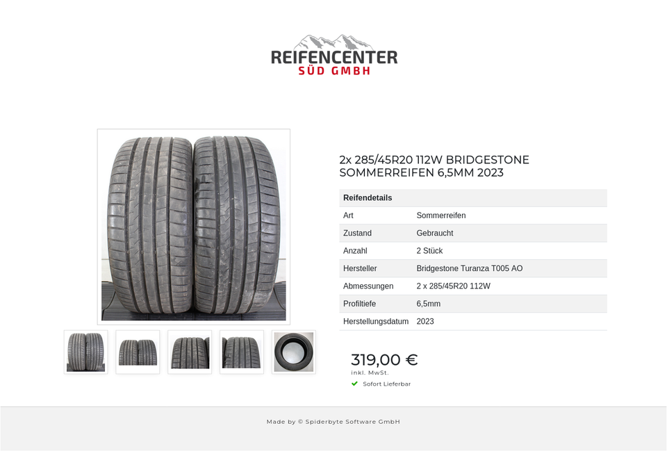 2x 285/45R20 112W BRIDGESTONE SOMMERREIFEN 6,5MM 2023