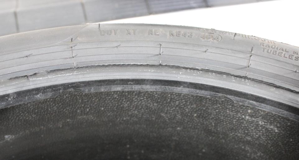 Ein Reifen hat kleine Abschürfung an der Wulst. (siehe Bild)