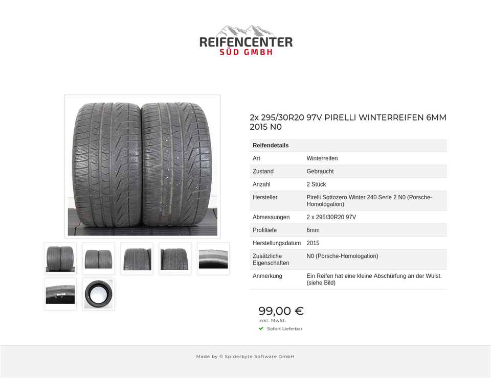 ► Anmerkung: Ein Reifen hat eine kleine Abschürfung an der Wulst. (siehe Bild)
