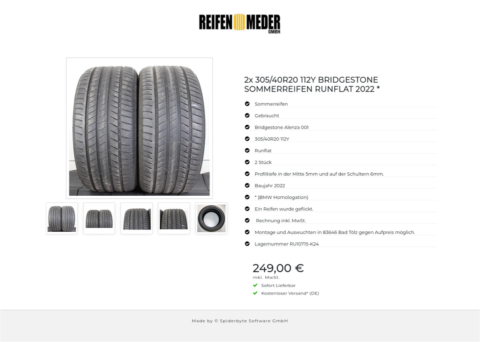 ★ KOSTENLOSER – VERSAND ★ Zum Verkauf stehen zwei gebrauchte Sommerreifen in der Größe 305/40R20 112Y vom Hersteller Bridgestone im Profil Alenza 001 * (BMW Homologation) Runflat Die Reifen sind aus der Produktion 2022. Die Profiltiefe beträ…
