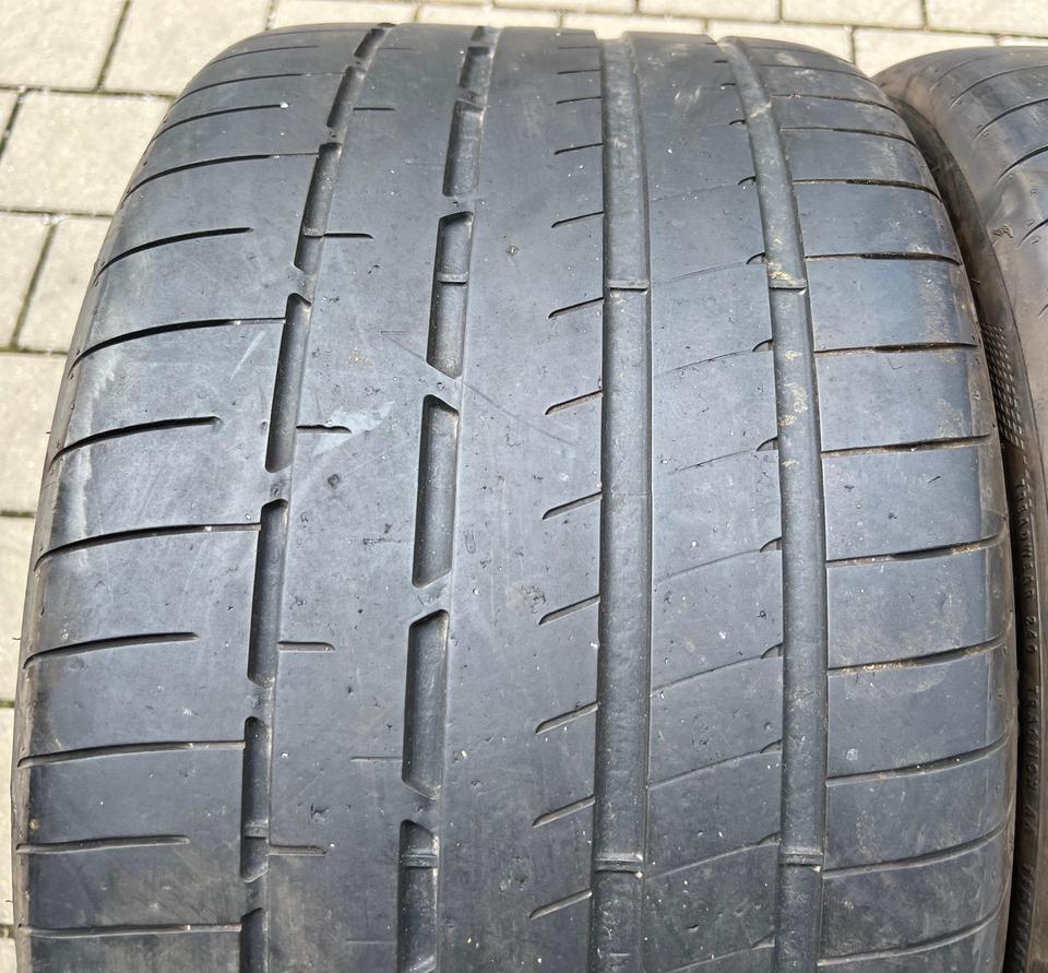 Die Reifen sind aus der Produktion 2018. Die Profiltiefe beträgt 2×7-7,5mm/2×8,5-9mm.