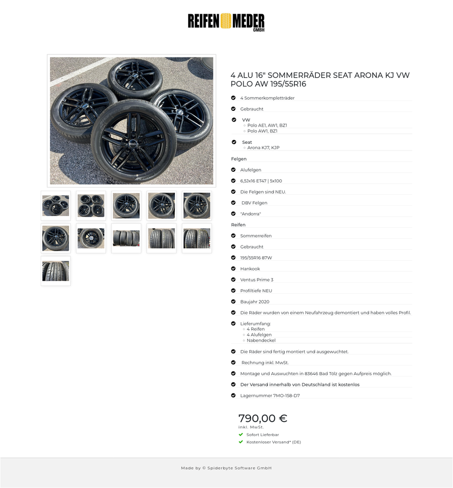 4 ALU 16″ SOMMERRÄDER SEAT ARONA KJ VW POLO AW 195/55R16 #1J6Q