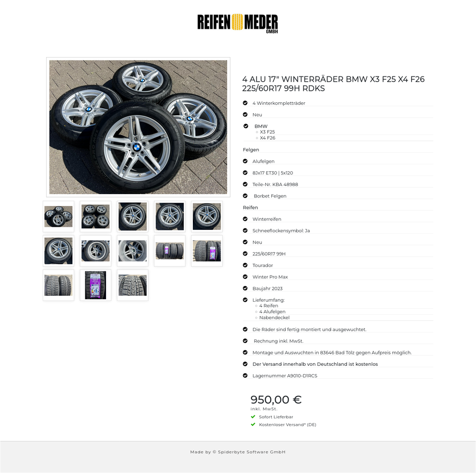 ★ KOSTENLOSER – VERSAND ★ Zum Verkauf stehen vier neue Borbet Alu Winterkompletträder für die Modelle BMW – X3 F25 – X4 F26 mit den Winterreifen in der Größe 225/60R17 99H Tourador Winter Pro Max mit Schneeflockensymbol auf den Alufelgen in de…