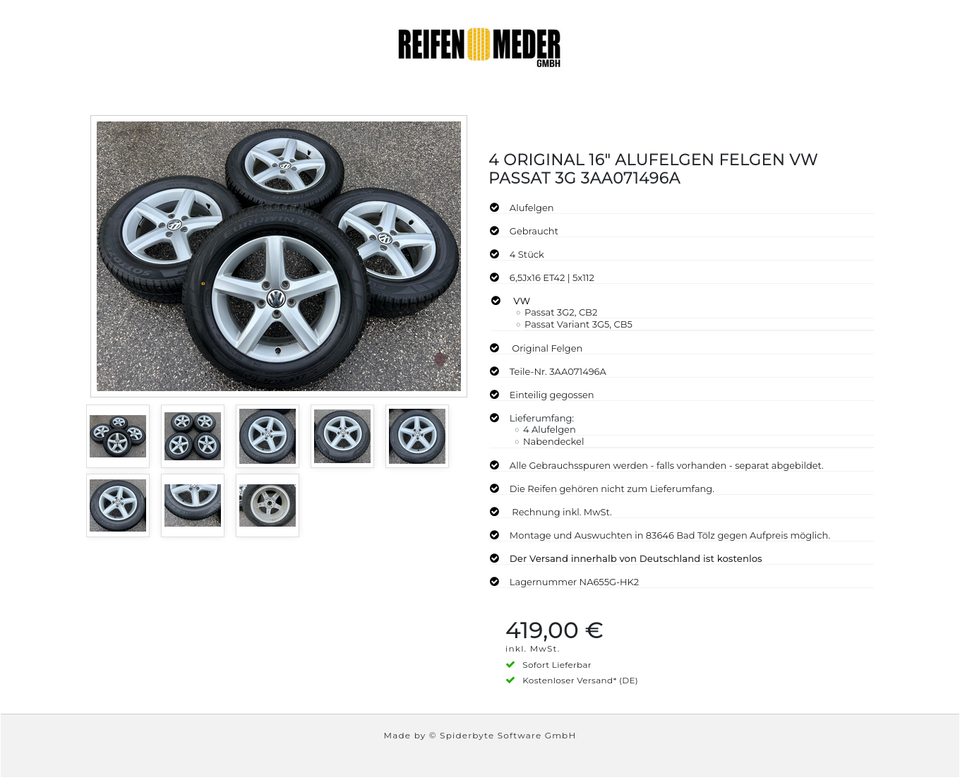 Die Räder liefere ich Ihnen fertig montiert und ausgewuchtet.