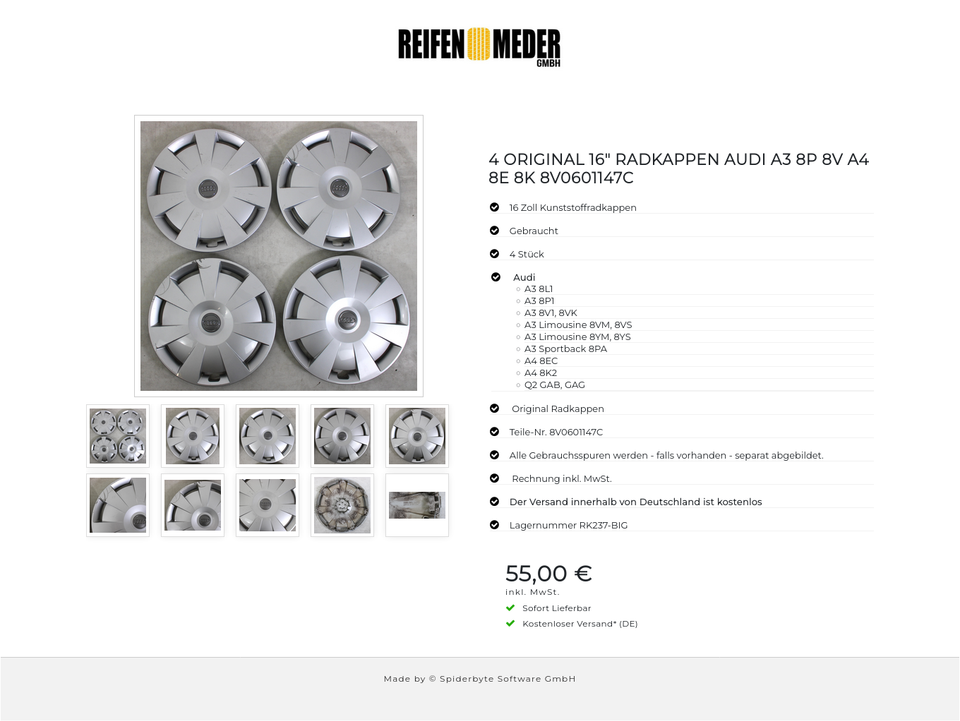 Die Radkappen sind gebraucht. Alle Gebrauchsspuren wurden separat abgebildet.