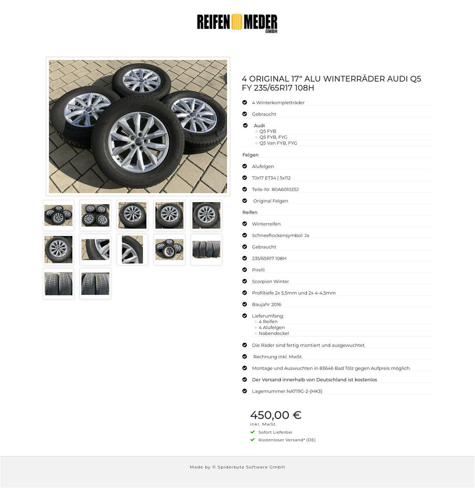 ★ KOSTENLOSER – VERSAND ★ Zum Verkauf stehen vier gebrauchte original Audi Alu Winterkompletträder für die Modelle Audi – Q5 FYB – Q5 FYB, FYG – Q5 Van FYB, FYG mit den Winterreifen in der Größe 235/65R17 108H Pirelli Scorpion Winter mit Schnee…