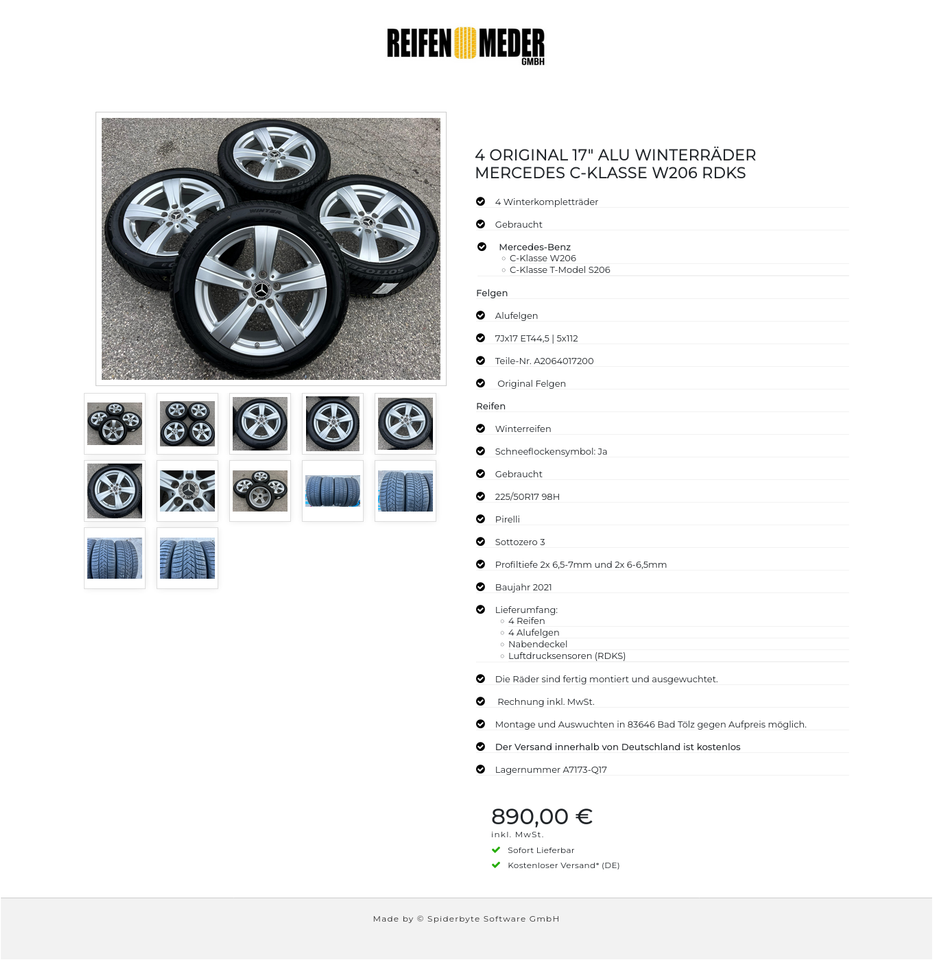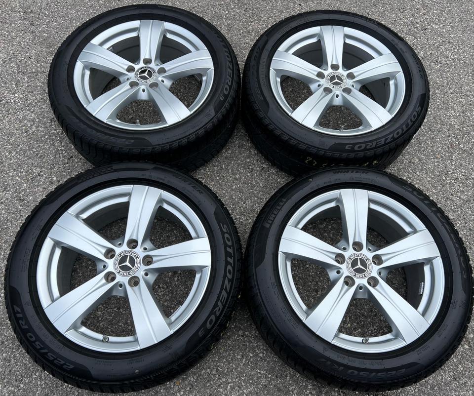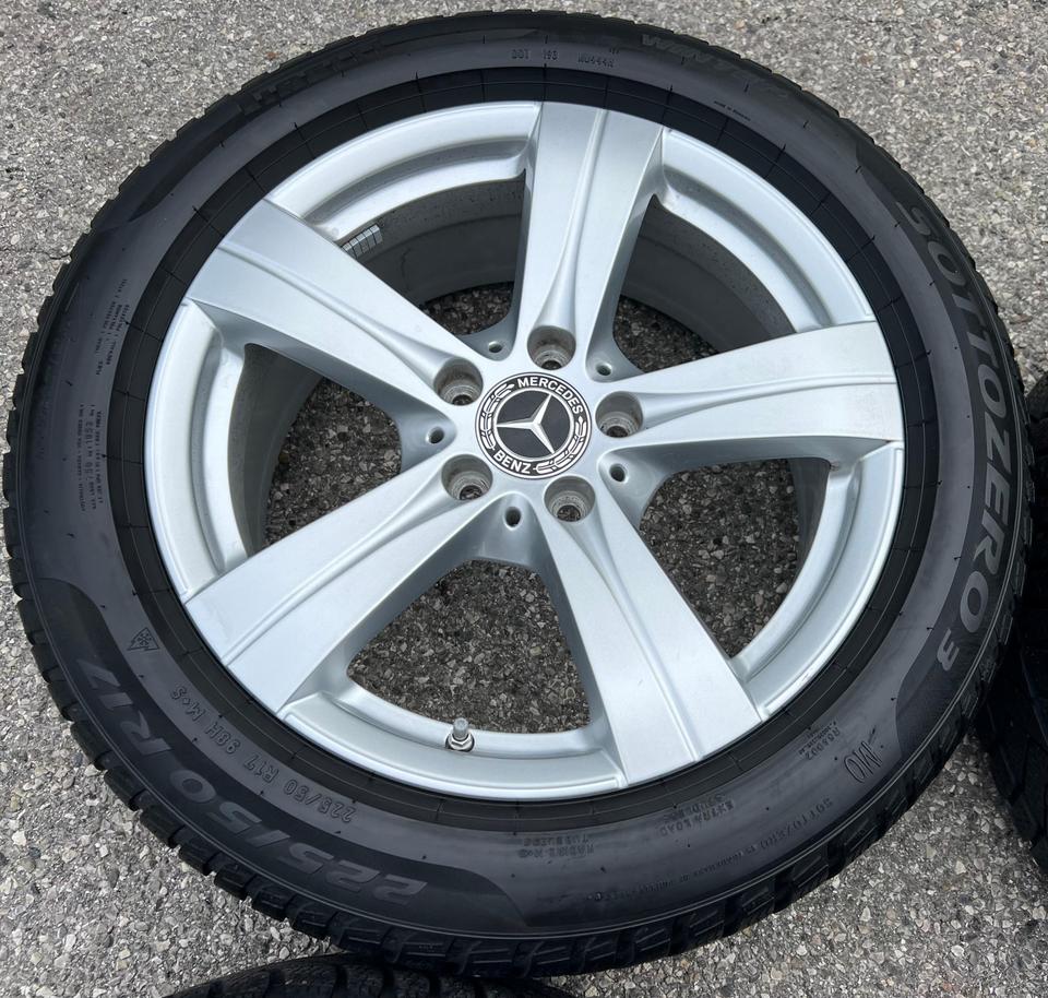 ★ KOSTENLOSER – VERSAND ★ Zum Verkauf stehen vier gebrauchte original Mercedes-Benz Alu Winterkompletträder für die Modelle Mercedes-Benz – C-Klasse W206 – C-Klasse T-Model S206 mit den Winterreifen in der Größe 225/50R17 98H Pirelli Sottozero …