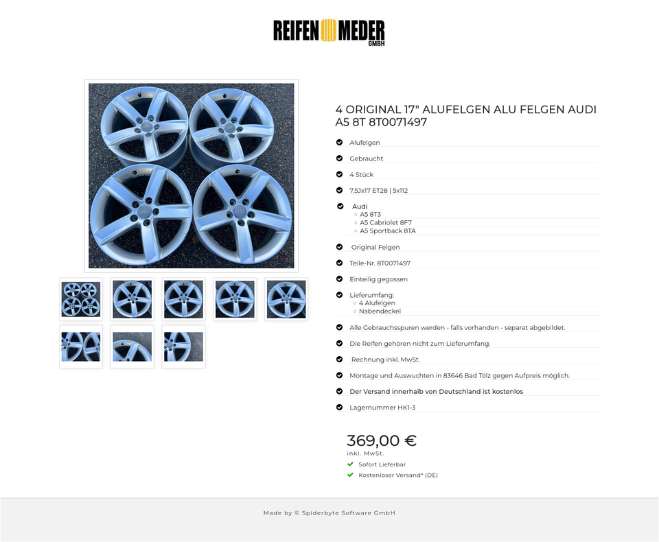 Die Felgen sind vom Hersteller Audi. Die Teile-Nr. ist auf der Rückseite der Felge eingestanzt.