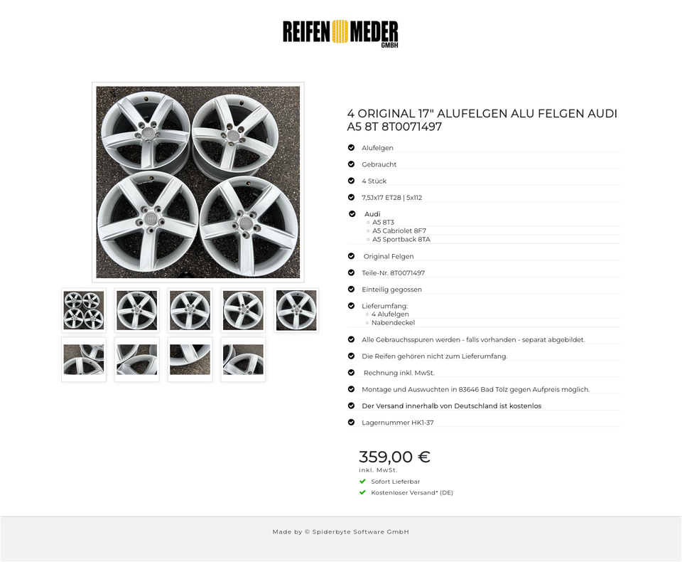 ★ KOSTENLOSER – VERSAND ★ Zum Verkauf stehen vier gebrauchte original Audi Alufelgen für die Modelle Audi – A5 8T3 – A5 Cabriolet 8F7 – A5 Sportback 8TA in der Größe 7,5Jx17H2 ET28 LZ5 LK112 Teile-Nr. 8T0071497 Die Felgen sind gebraucht. Alle …