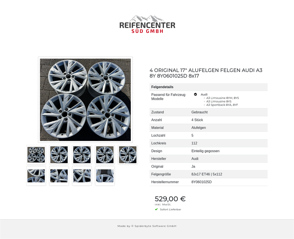 4 ORIGINAL 17″ ALUFELGEN FELGEN AUDI A3 8Y 8Y0601025D 8×17
