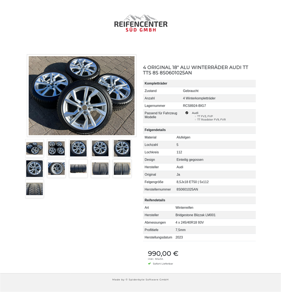 4 ORIGINAL 18″ ALU WINTERRÄDER AUDI TT TTS 8S 8S0601025AN