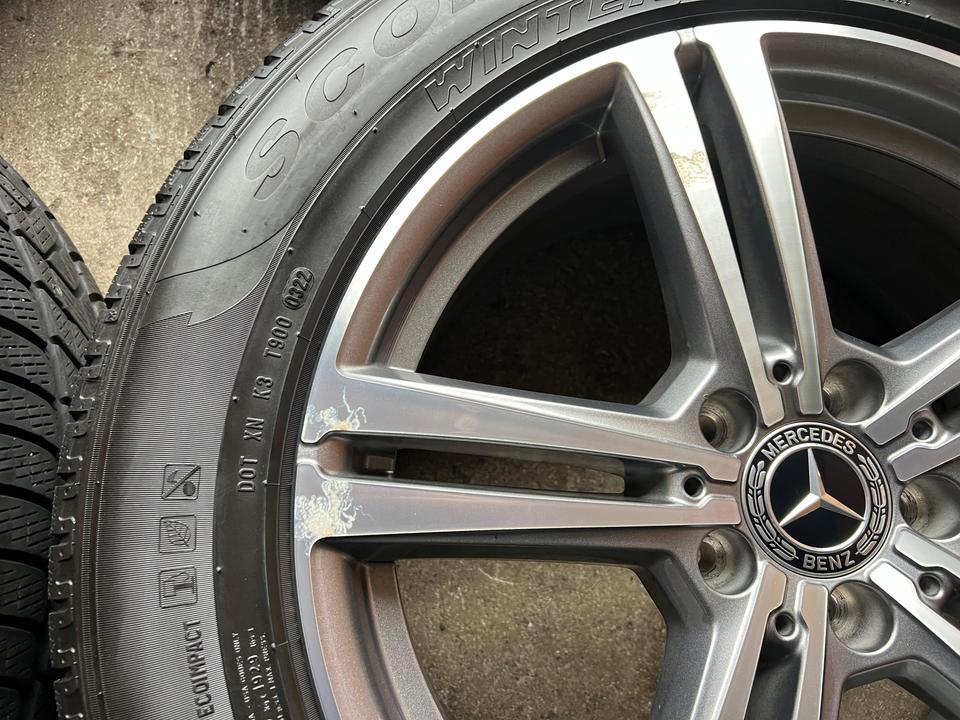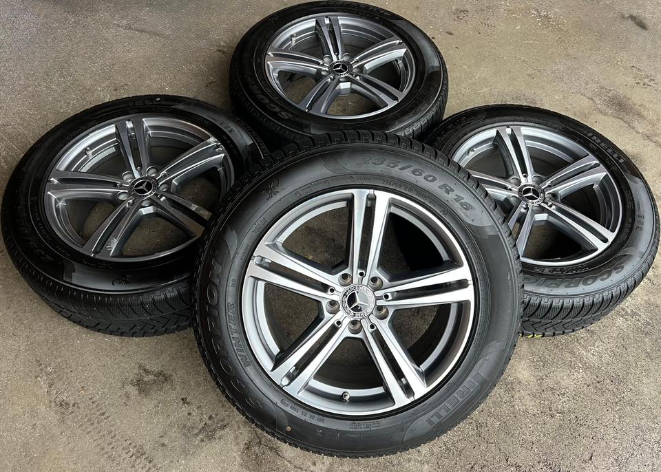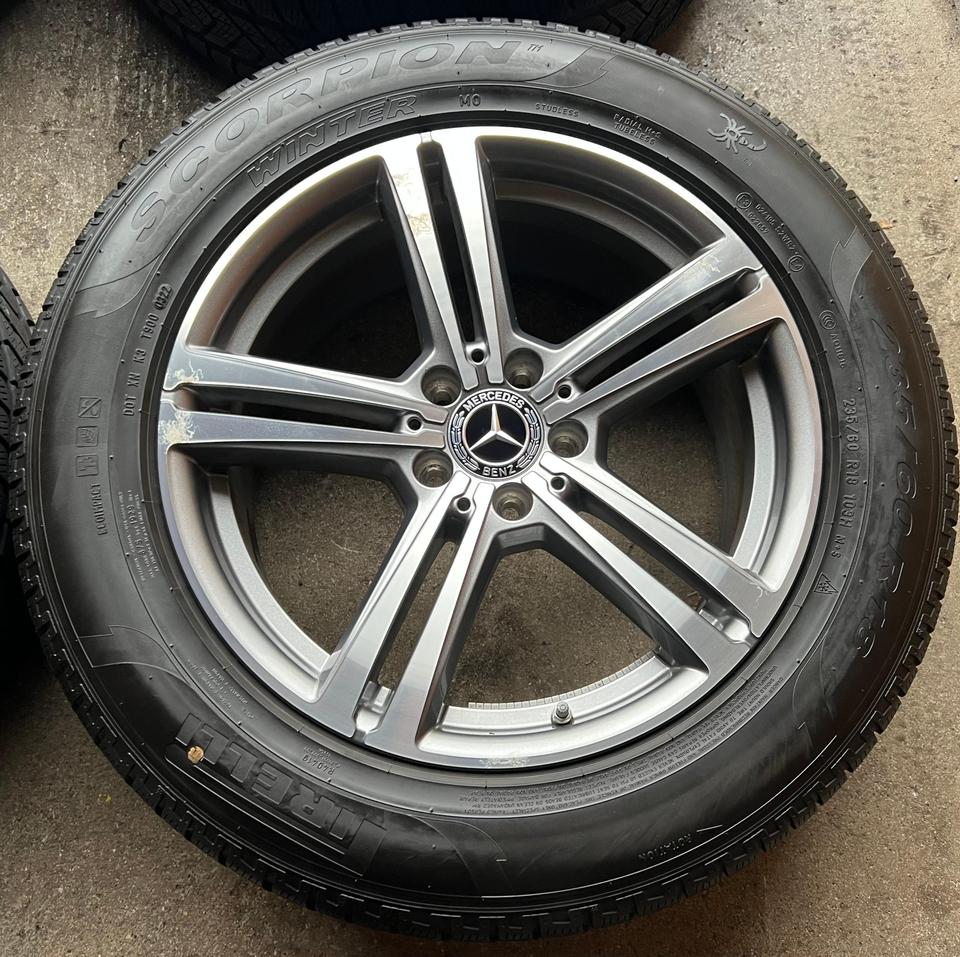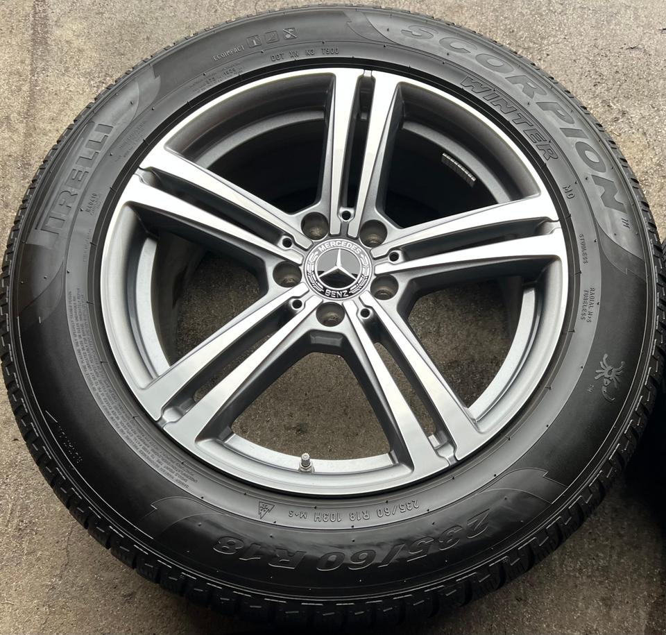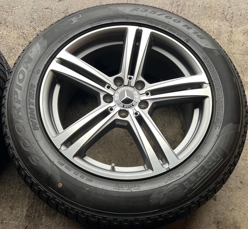 ★ KOSTENLOSER – VERSAND ★ Zum Verkauf stehen vier gebrauchte original Mercedes-Benz Alu Winterkompletträder für die Modelle Mercedes-Benz – GLC X253 – GLC Coupe C253 mit den Winterreifen in der Größe 235/60R18 103V Pirelli Scorpion Winter mit S…