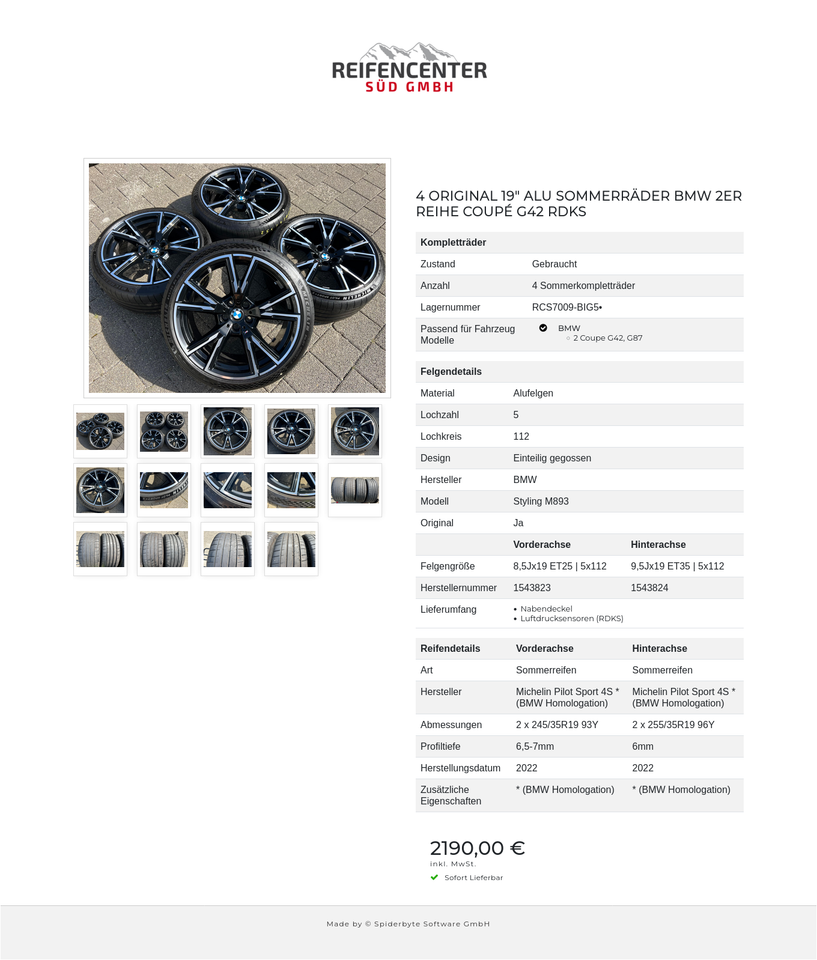 ► Felgengröße: 9,5Jx19H2 ET35 LZ5 LK112 Styling M893
