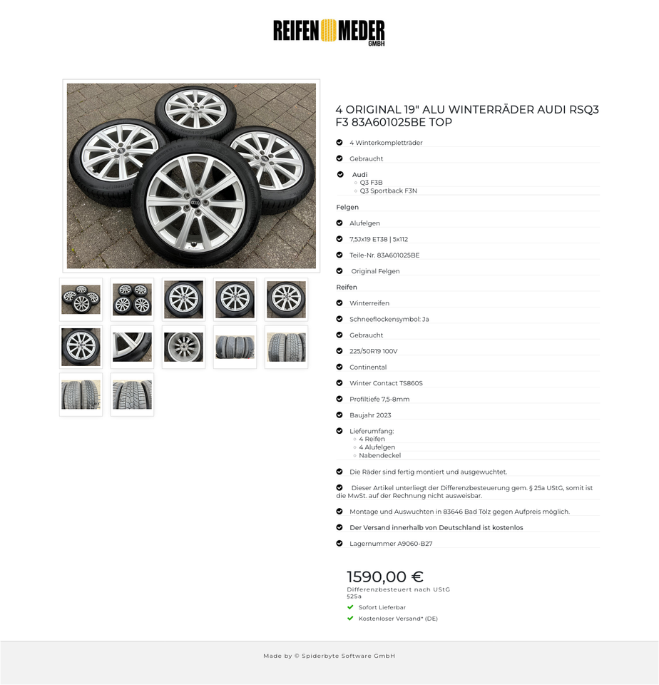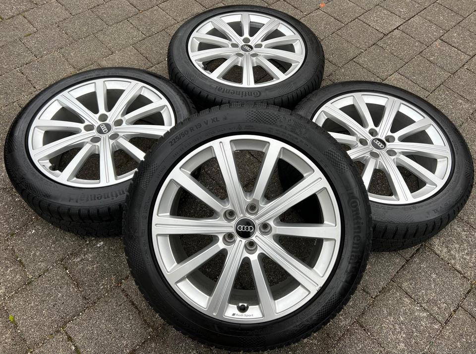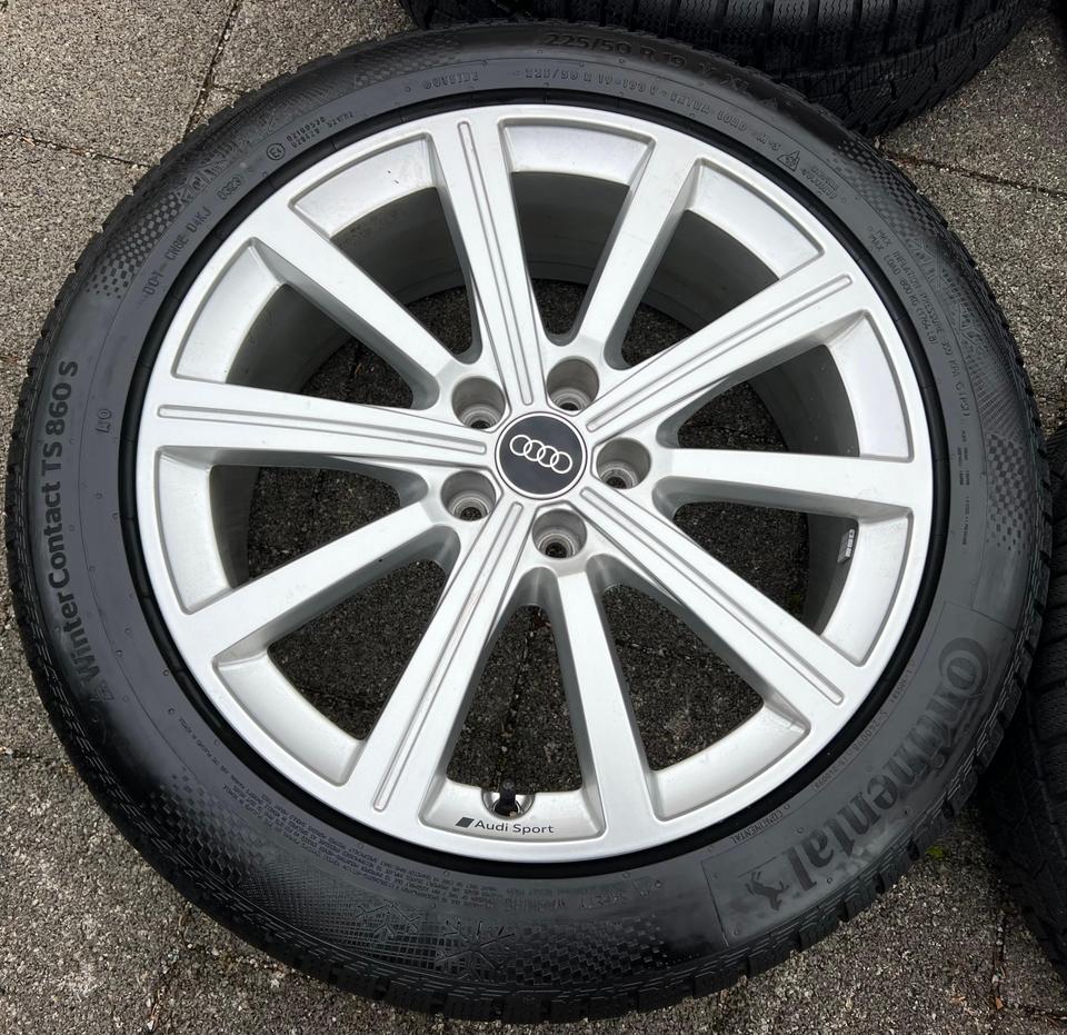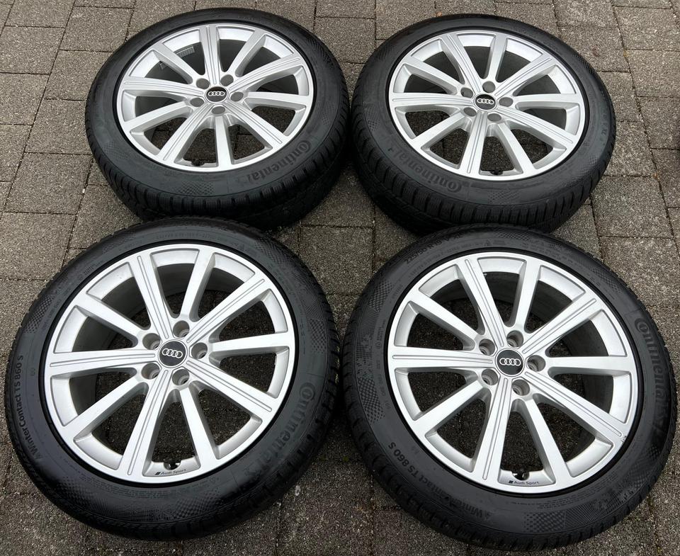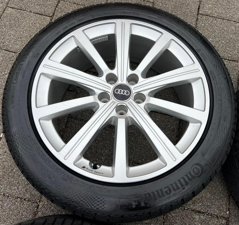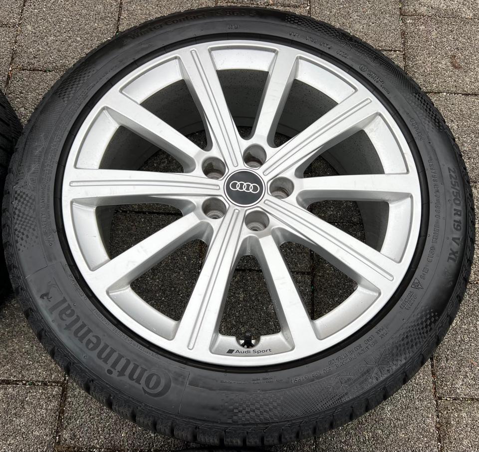 ★ KOSTENLOSER – VERSAND ★ Zum Verkauf stehen vier gebrauchte original Audi Alu Winterkompletträder für die Modelle Audi – Q3 F3B – Q3 Sportback F3N mit den Winterreifen in der Größe 225/50R19 100V Continental Winter Contact TS860S mit Schneeflo…