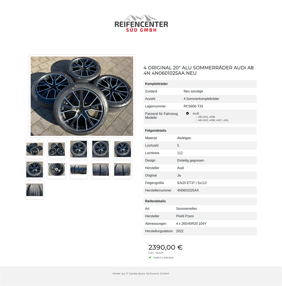 4 ORIGINAL 20″ ALU SOMMERRÄDER AUDI A8 4N 4N0601025AA NEU