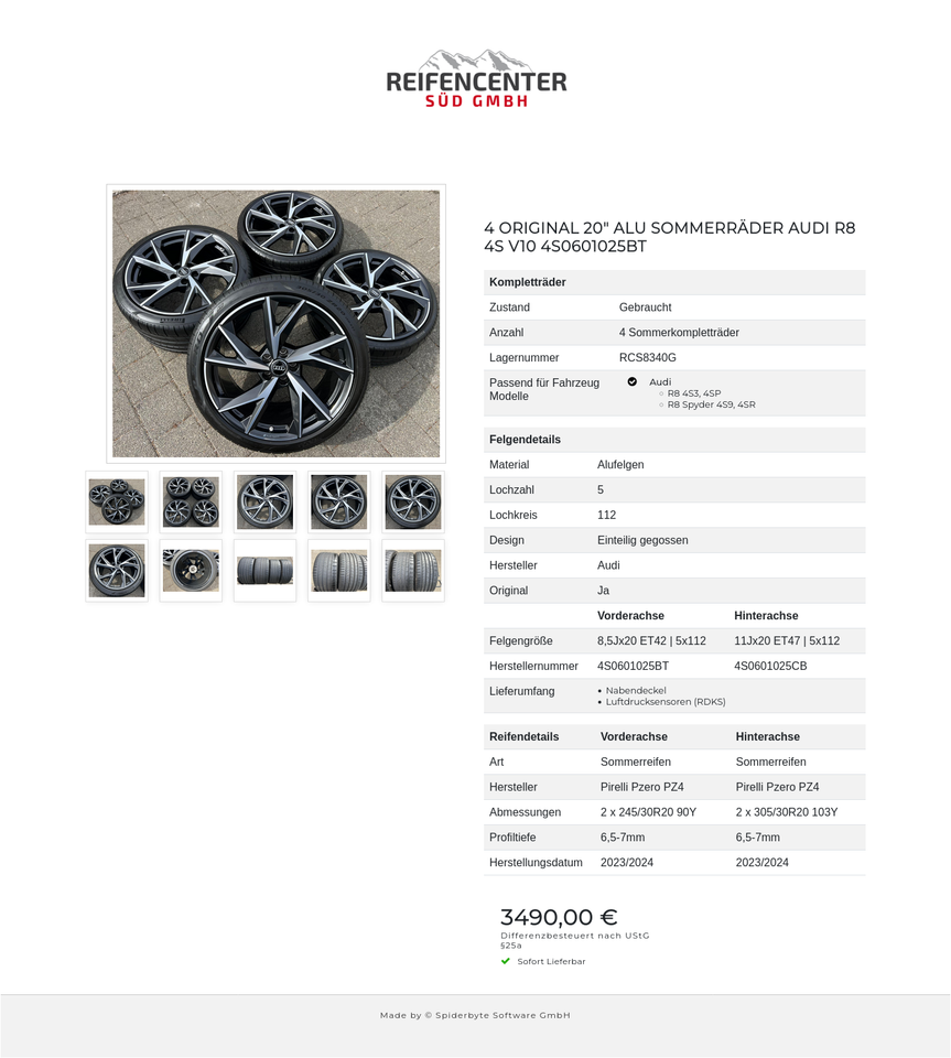 4 ORIGINAL 20″ ALU SOMMERRÄDER AUDI R8 4S V10 4S0601025BT