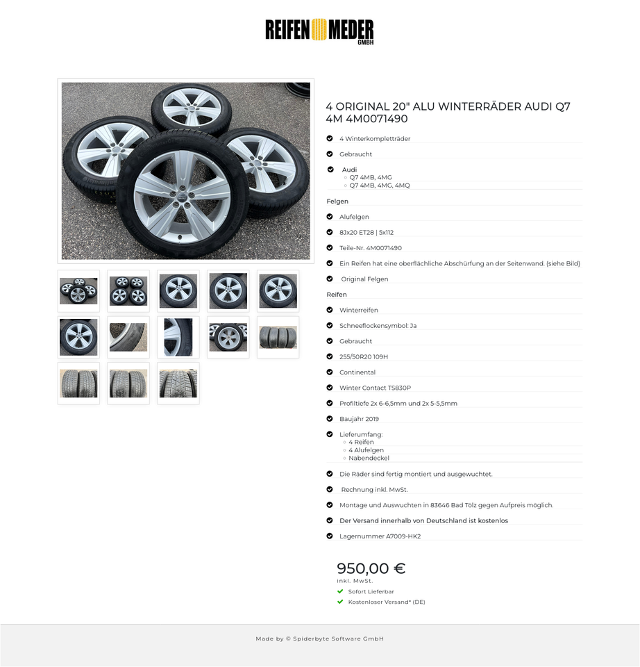 ★ KOSTENLOSER – VERSAND ★ Zum Verkauf stehen vier gebrauchte original Audi Alu Winterkompletträder für die Modelle Audi – Q7 4MB, 4MG – Q7 4MB, 4MG, 4MQ mit den Winterreifen in der Größe 255/50R20 109H Continental Winter Contact TS830P mit Schn…