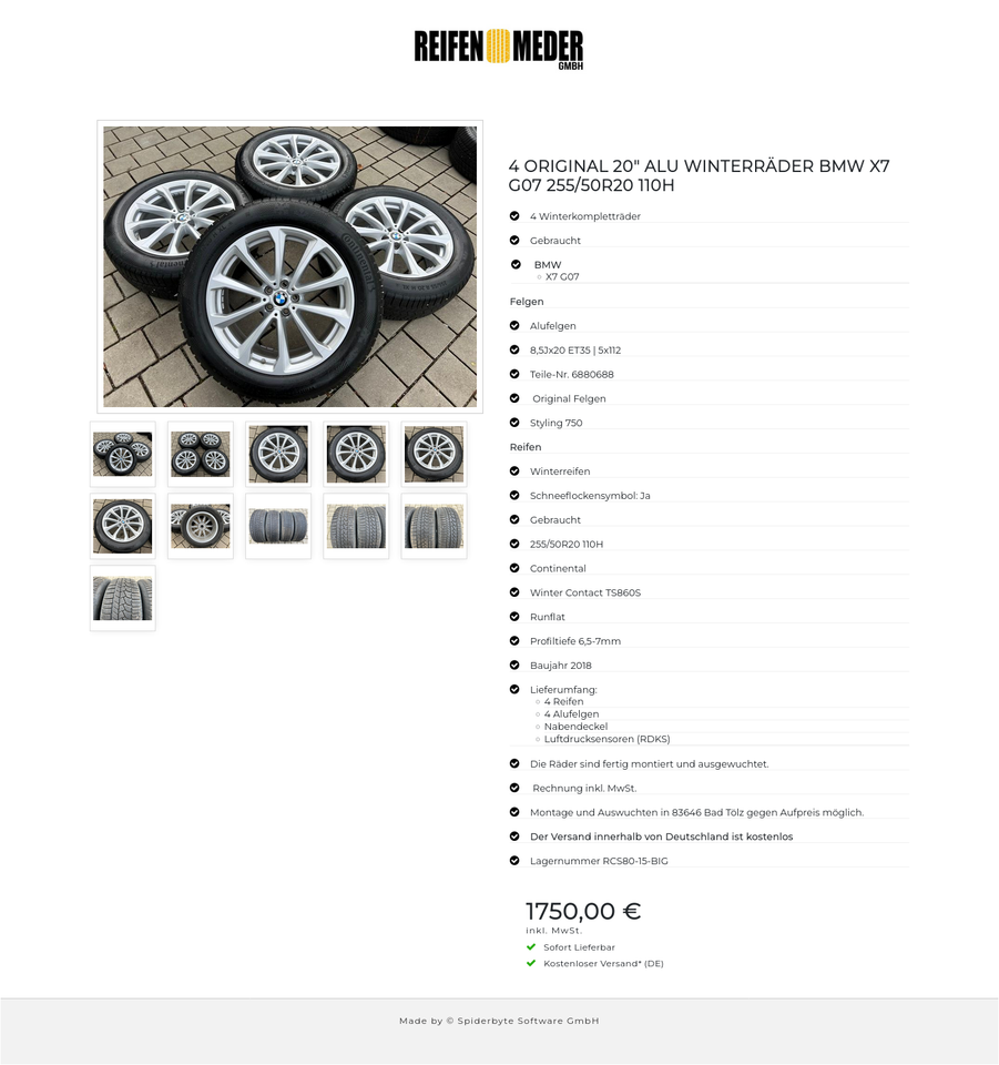 ★ KOSTENLOSER – VERSAND ★ Zum Verkauf stehen vier gebrauchte original BMW Alu Winterkompletträder für die Modelle BMW – X7 G07 mit den Winterreifen in der Größe 255/50R20 110H Continental Winter Contact TS860S Runflat mit Schneeflockensymbol a…