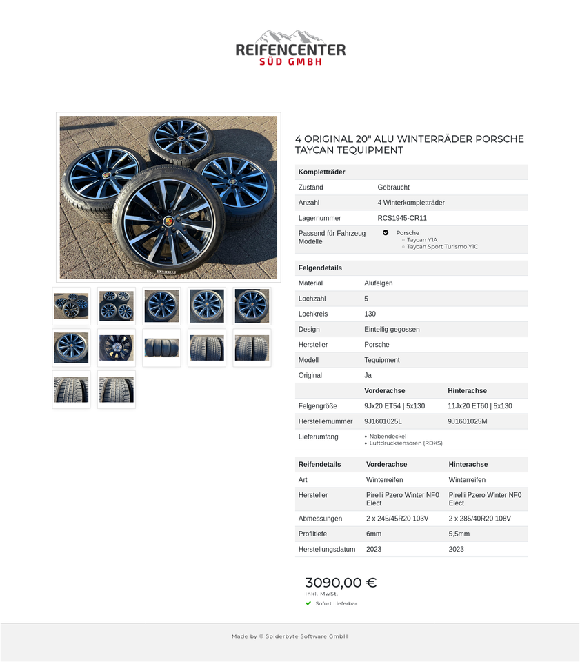 4 ORIGINAL 20″ ALU WINTERRÄDER PORSCHE TAYCAN TEQUIPMENT