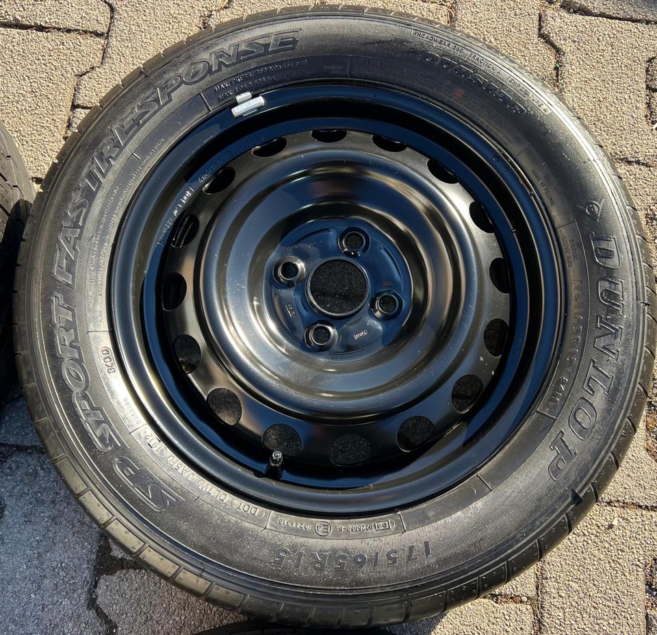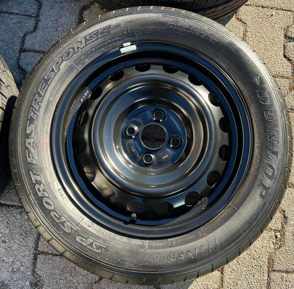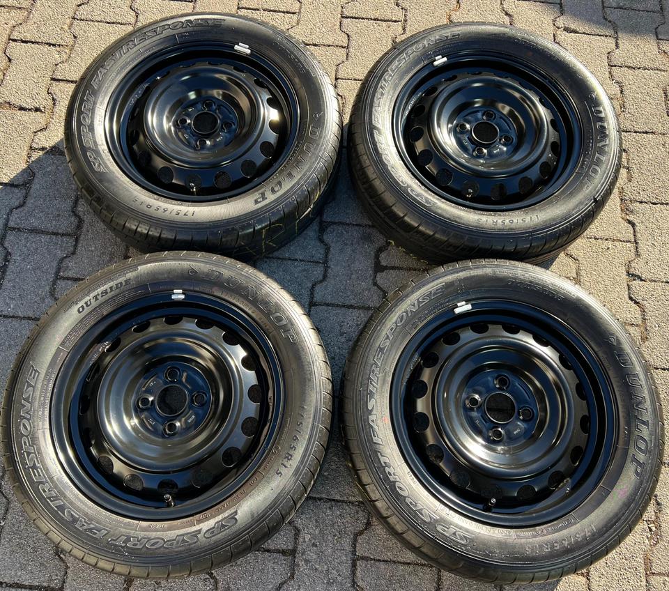 ★ KOSTENLOSER – VERSAND ★ Zum Verkauf stehen vier gebrauchte Toyota Stahl Sommerkompletträder für die Modelle Toyota – Yaris Kasten/Schrägheck P13 mit den Sommerreifen in der Größe 175/65R15 84H Dunlop SP Sport Fastresponse auf den Stahlfelgen…