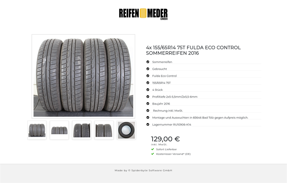 ★ KOSTENLOSER – VERSAND ★ Zum Verkauf stehen vier gebrauchte Sommerreifen in der Größe 155/65R14 75T vom Hersteller Fulda im Profil Eco Control Die Reifen sind aus der Produktion 2016. Die Profiltiefe beträgt 2×5-5,5mm/2×5,5-6mm. Die Bezahl…