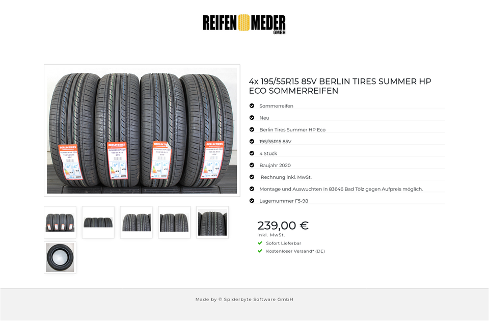 4x 195/55R15 85V BERLIN TIRES SUMMER HP ECO SOMMERREIFEN #1UMA