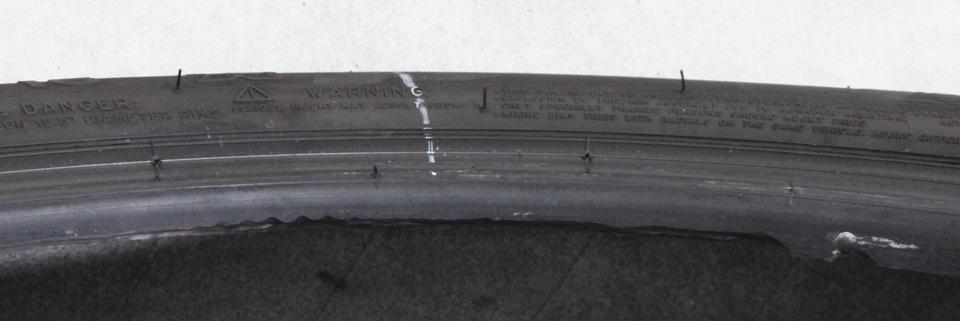► Anmerkung: Ein Reifen hat eine Abschürfung an der Wulst. (siehe Bild)