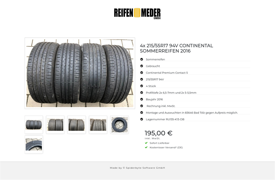 ★ KOSTENLOSER – VERSAND ★ Zum Verkauf stehen vier gebrauchte Sommerreifen in der Größe 215/55R17 94V vom Hersteller Continental im Profil Premium Contact 5 Die Reifen sind aus der Produktion 2016. Die Profiltiefe beträgt 2x 6,5-7mm und 2x 5-…