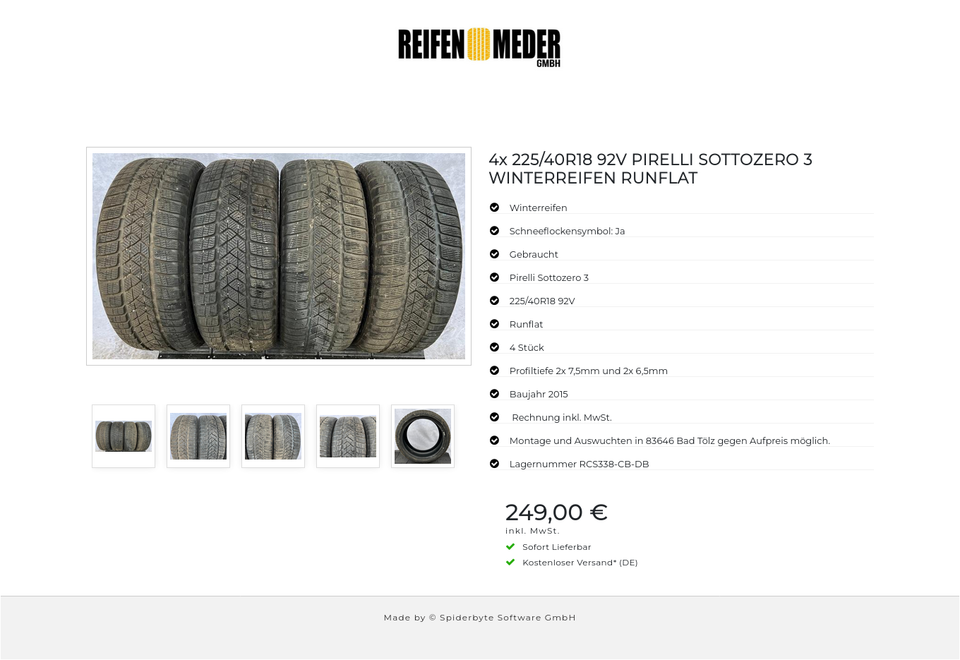 4x 225/40R18 92V PIRELLI SOTTOZERO 3 WINTERREIFEN RUNFLAT #9875