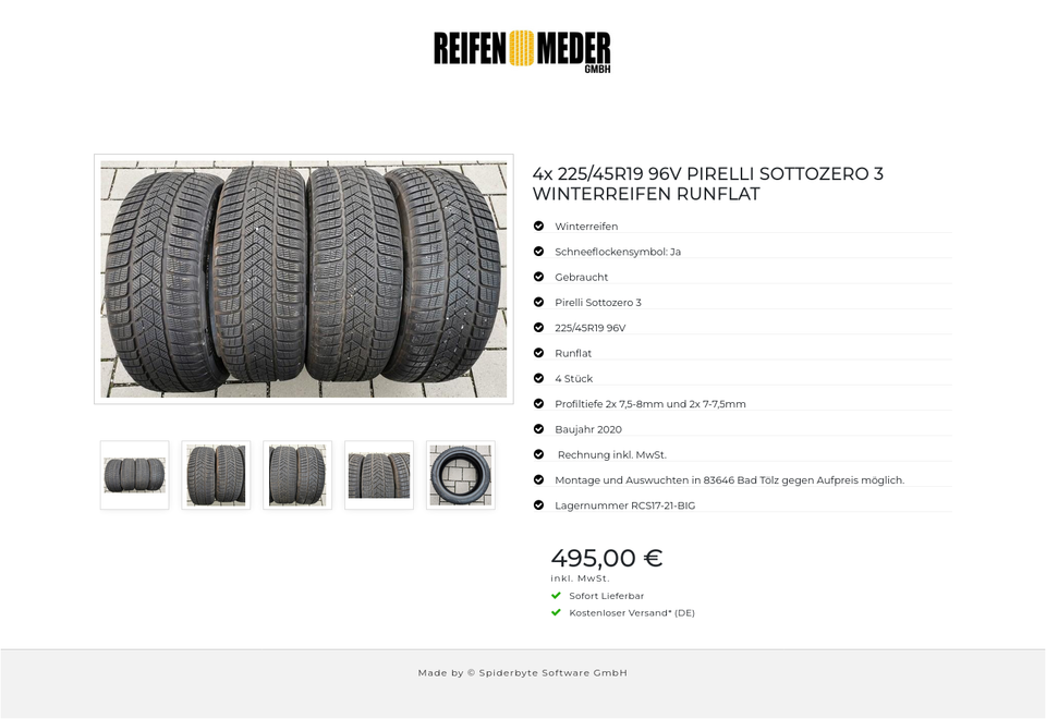 ★ KOSTENLOSER – VERSAND ★ Zum Verkauf stehen vier gebrauchte Winterreifen in der Größe 225/45R19 96V vom Hersteller Pirelli im Profil Sottozero 3 Runflat mit Schneeflockensymbol Die Reifen sind aus der Produktion 2020. Die Profiltiefe beträ…