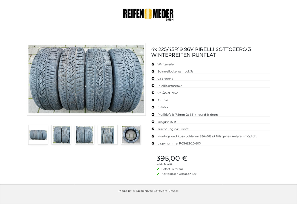 ★ KOSTENLOSER – VERSAND ★ Zum Verkauf stehen vier gebrauchte Winterreifen in der Größe 225/45R19 96V vom Hersteller Pirelli im Profil Sottozero 3 Runflat mit Schneeflockensymbol Die Reifen sind aus der Produktion 2019. Die Profiltiefe beträ…