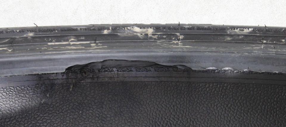 ► Anmerkung: Ein Reifen hat eine Abschürfung an der Wulst. (siehe Bild)
