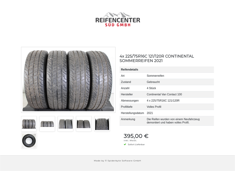 4x 225/75R16C 121/120R CONTINENTAL SOMMERREIFEN 2021