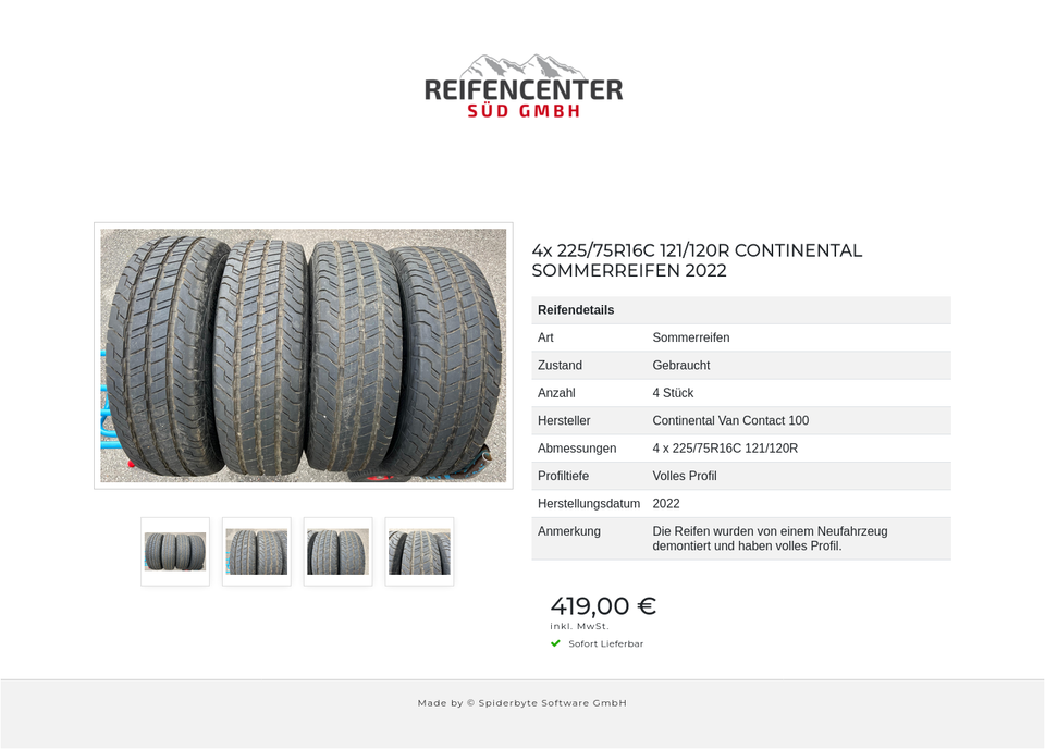 4x 225/75R16C 121/120R CONTINENTAL SOMMERREIFEN 2022