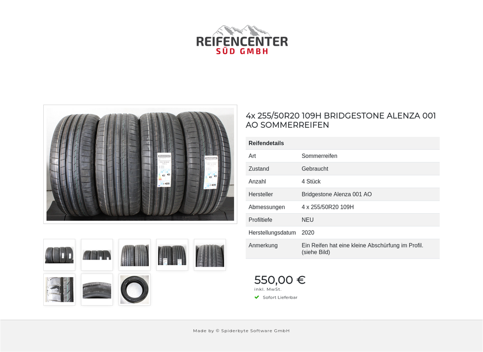 ► Anmerkung: Ein Reifen hat eine kleine Abschürfung im Profil. (siehe Bild)